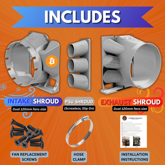 ANTMINER STOCK FAN Enabled Shrouds (8" Intake + Exhaust) v3.5